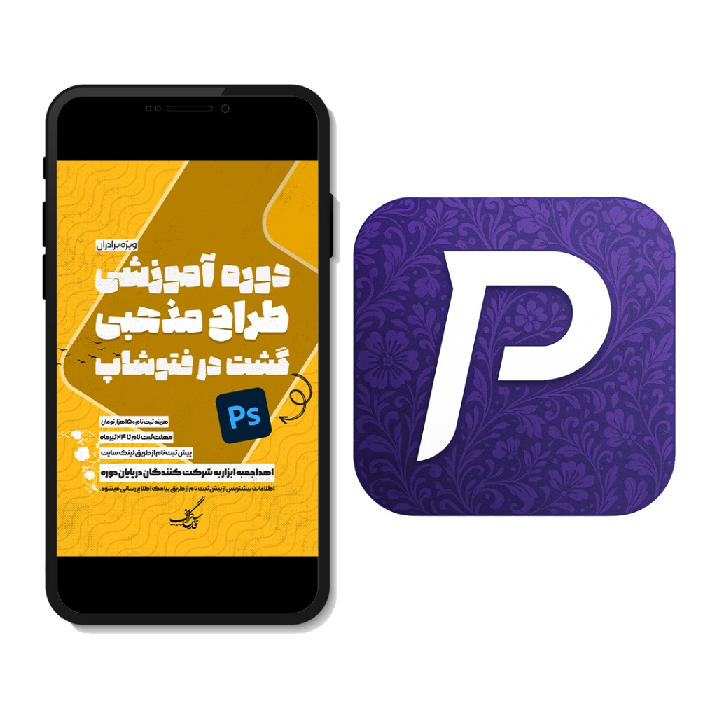 طراحی پوستر تبلیغاتی "دوره آموزشی فتوشاپ" پیکساگرافیک